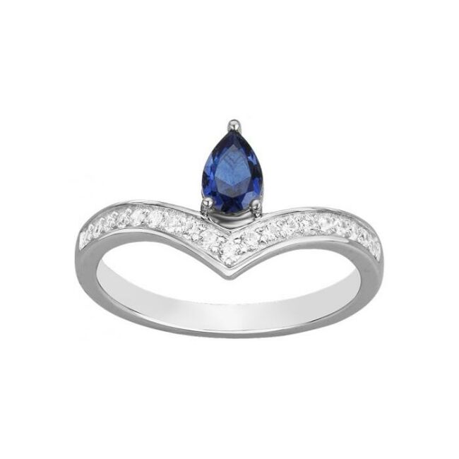 Bague en argent, spinelle bleue et oxyde de zirconium, taille 54