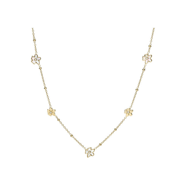 Collier Fossil Vintage Flower en métal doré, nacre et verre