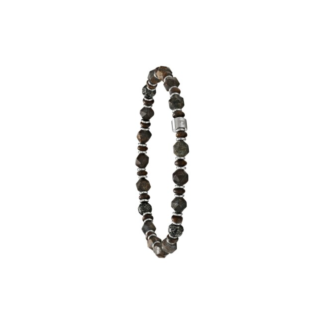 Bracelet Jourdan Bijoux Halo en acier, hématite et obsidienne neigeuse