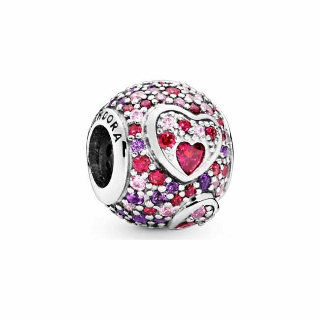 Pandora People Charm Pandora People pavé cœurs asymétriques en argent et oxyde de zirconium et cristal