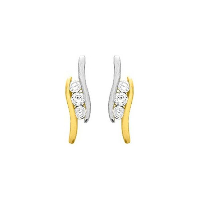 Boucles d'oreilles en or jaune, or blanc et oxyde de zirconium