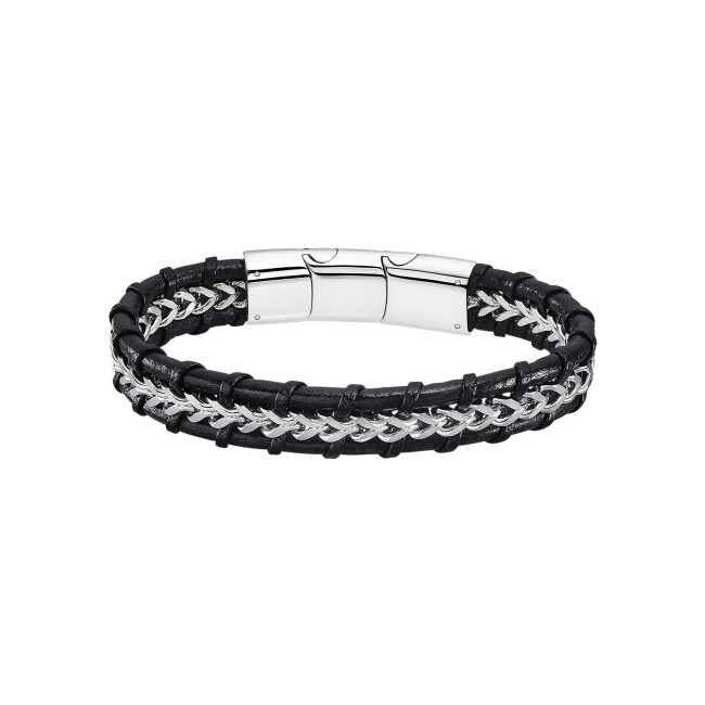 Men Basic Bracelet Lotus Men Basic en acier et cuir noir
