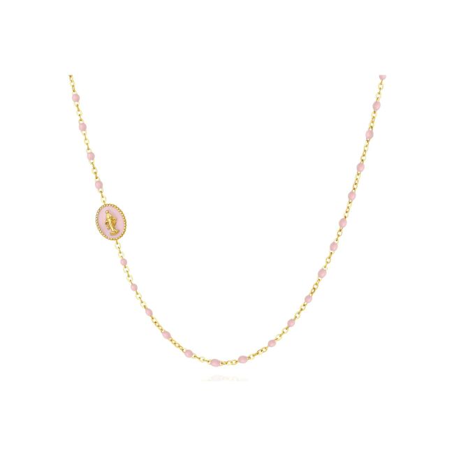 Collier Pixies en acier doré et résine rose