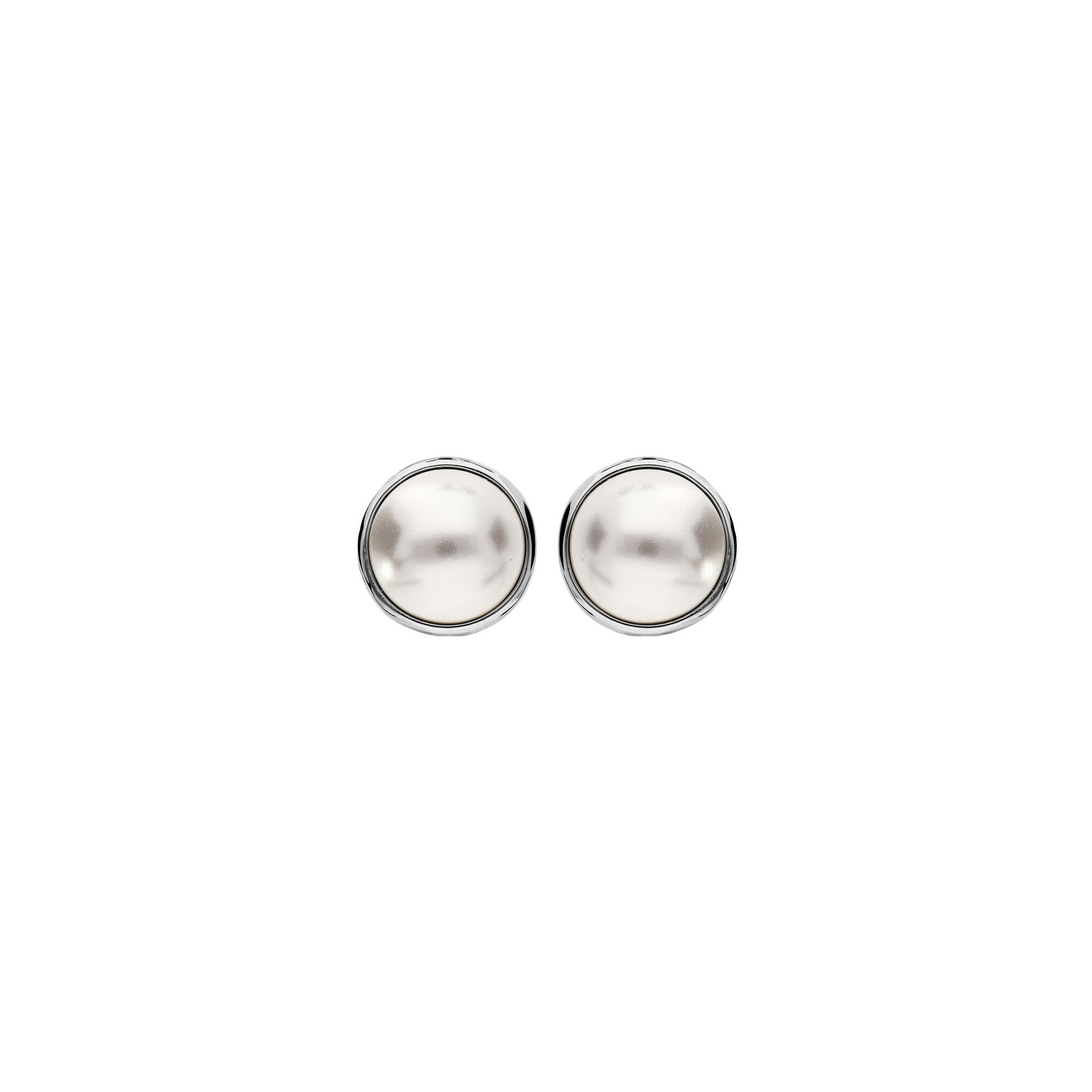 Boucles d'oreilles clip laiton placage palladium avec demi perle synthétique blanche 10mm