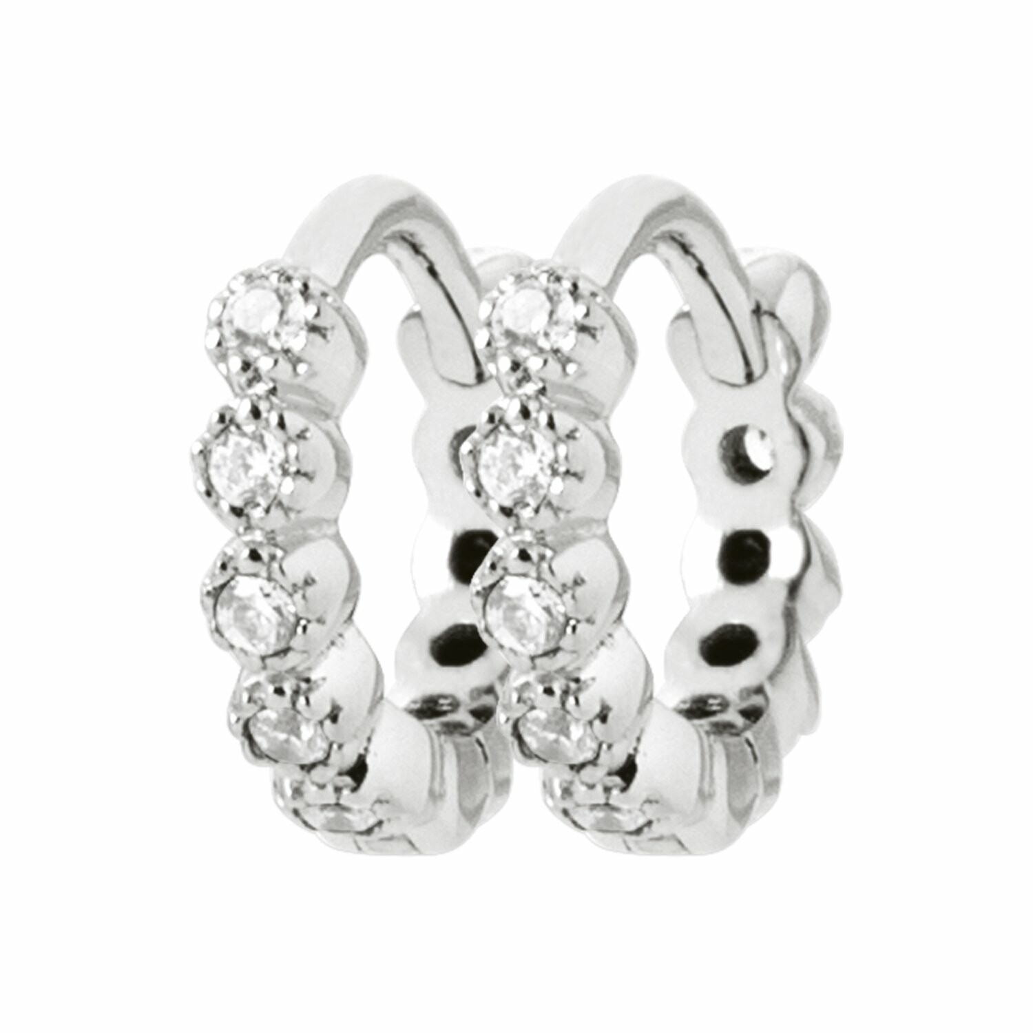 Boucles d'oreilles créoles en argent rhodié et oxydes de zirconium