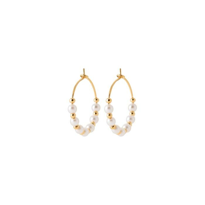 Boucles d'oreilles créoles en plaqué or et perles d'imitation