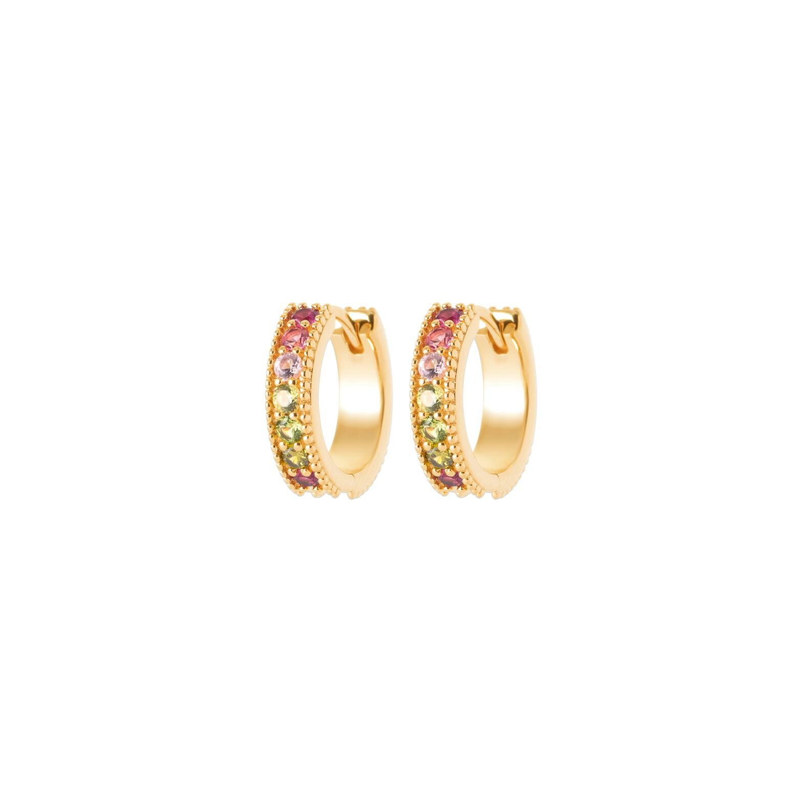Boucles d'oreilles créoles en plaqué or et pierres de couleurs