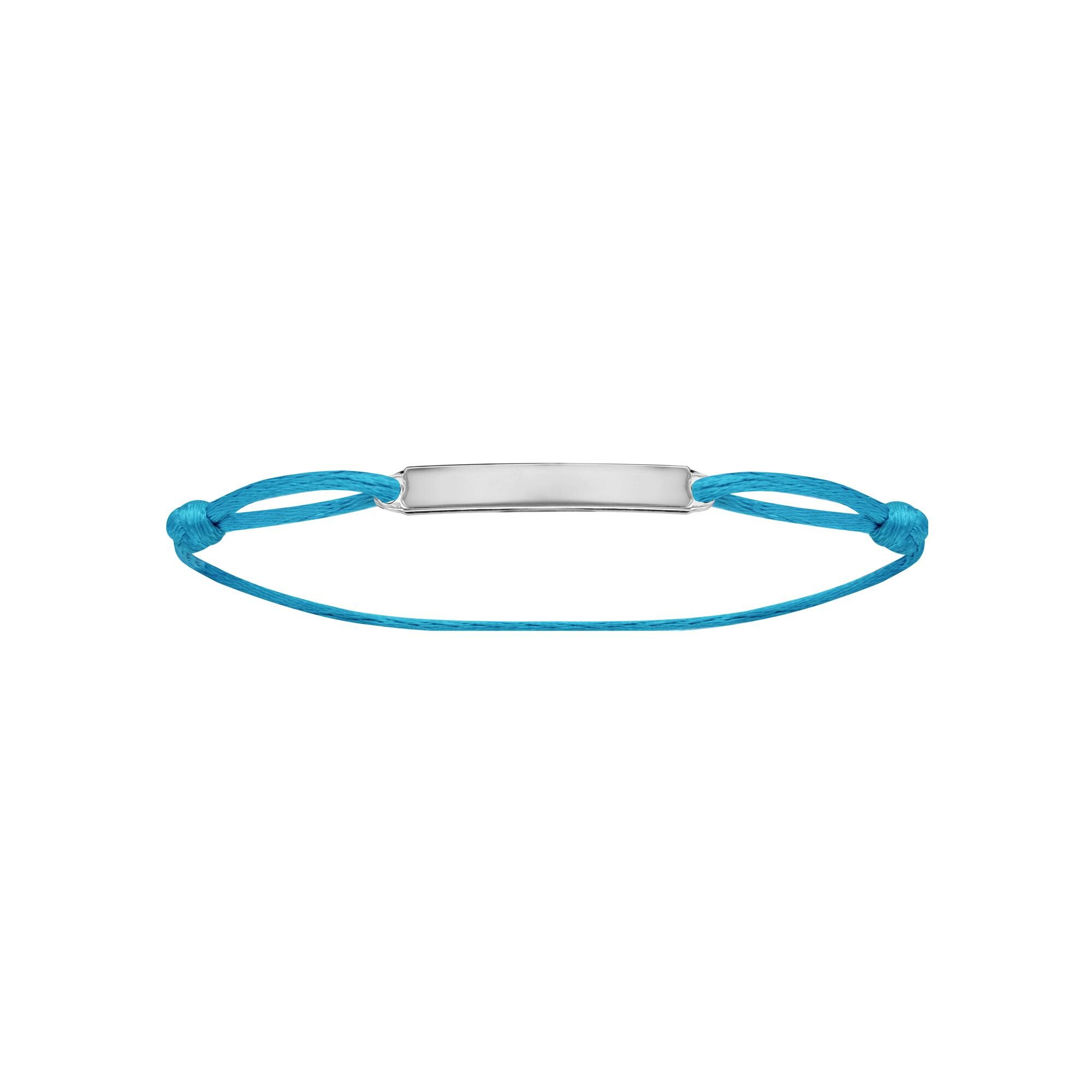 Bracelet argent rhodié cordon bleu ciel réglable avec plaque rectangulaire