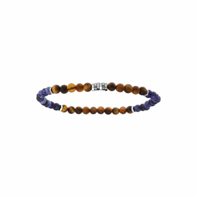 Bracelet en acier extensible boules oeil de tigre et quartz bleu et marron