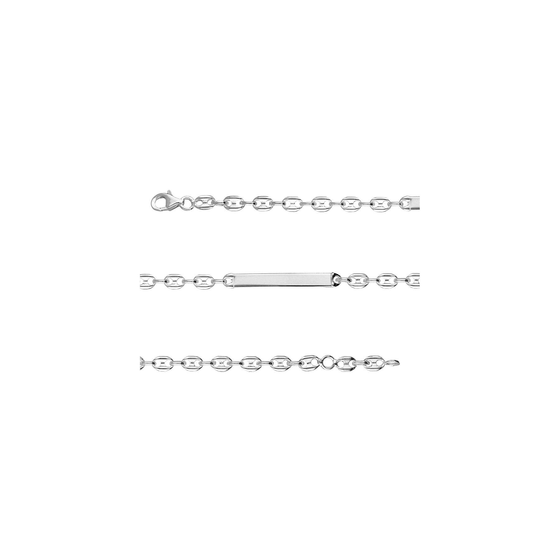 Bracelet identite argent rhodié plaque droite maille grain de café fermoir mousqueton 17cm réglable 15cm