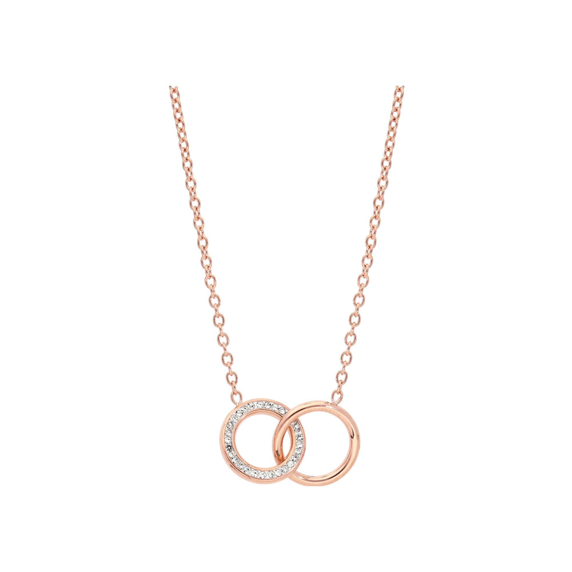 Collier acier et pvd rose double cercle oxydes blancs sertis 42+3cm