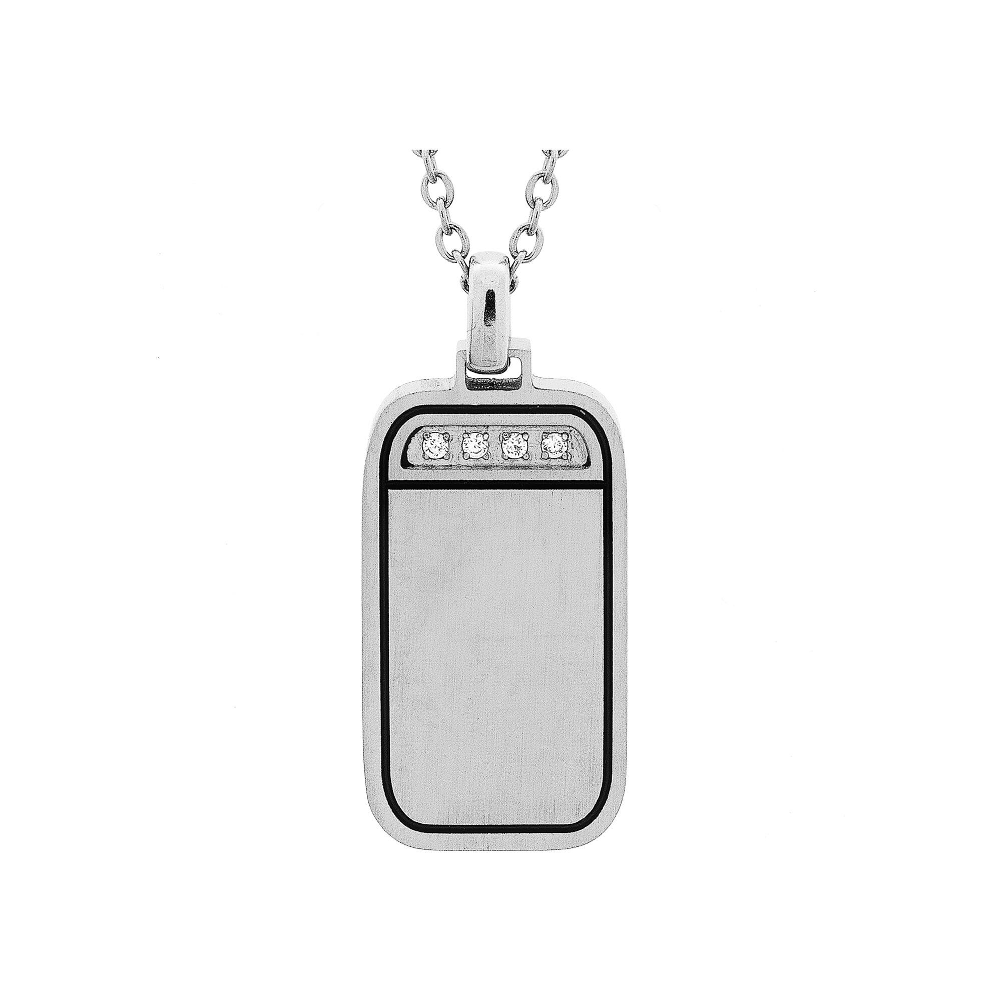 Collier acier pendentif rectangulaire contour résine noire avec oxydes blancs sertis 50cm réglable 45