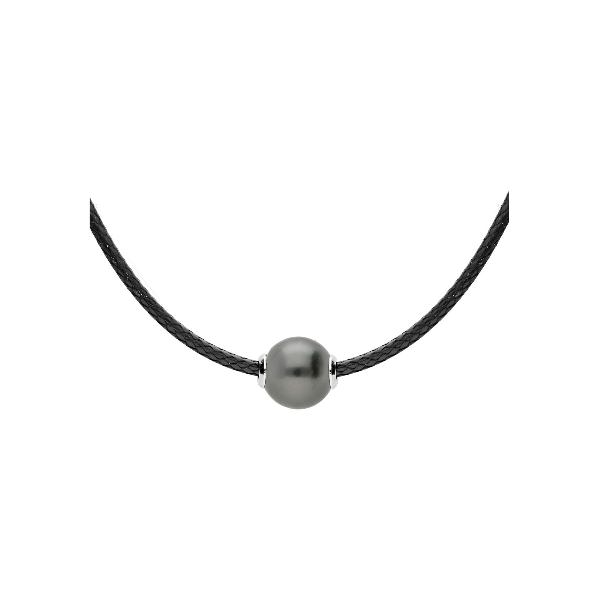 Collier argent rhodié cordon coton ciré 2mm avec perle de culture de tahiti 50+5cm