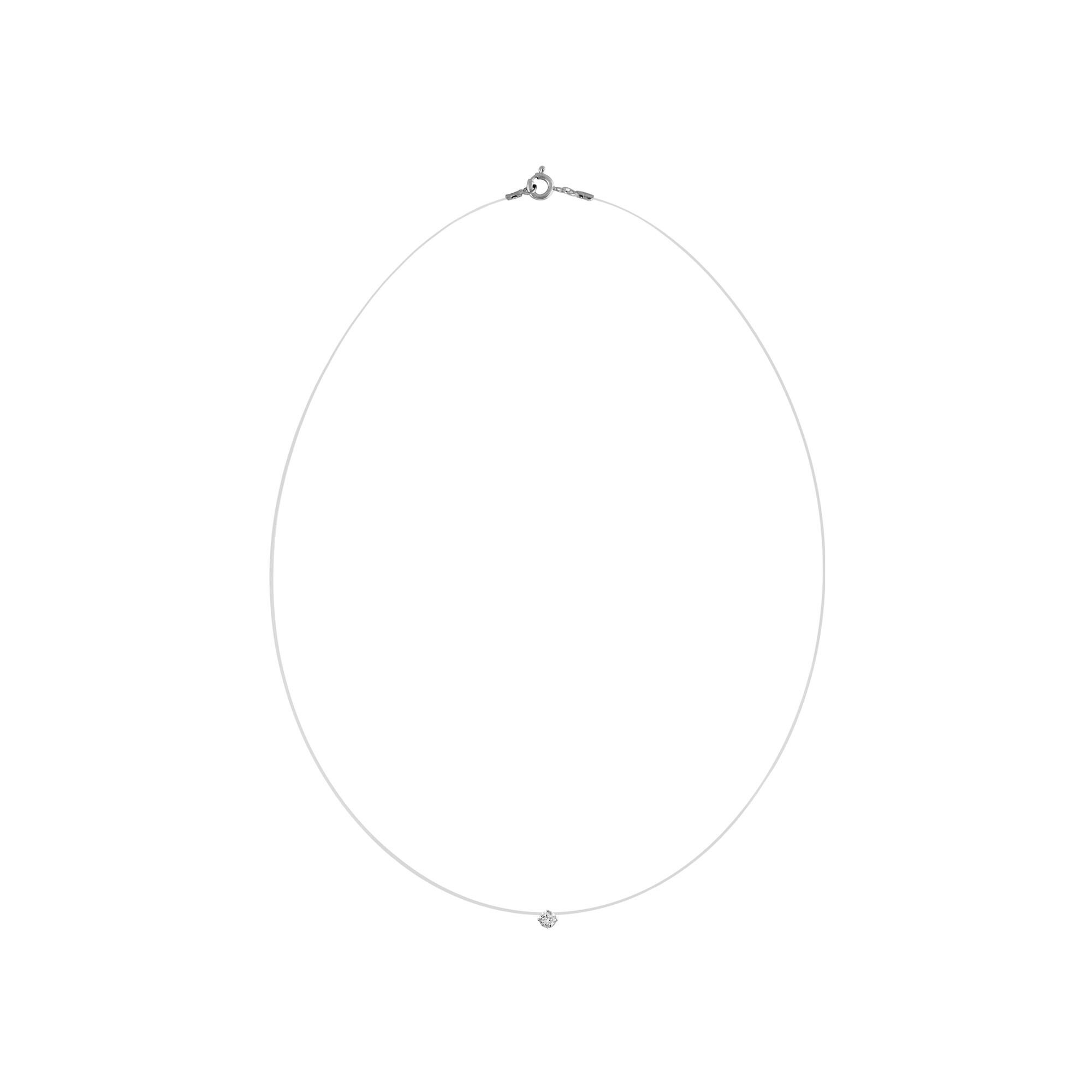 Collier argent rhodié fil nylon solitaire oxyde blanc 3mm 42cm