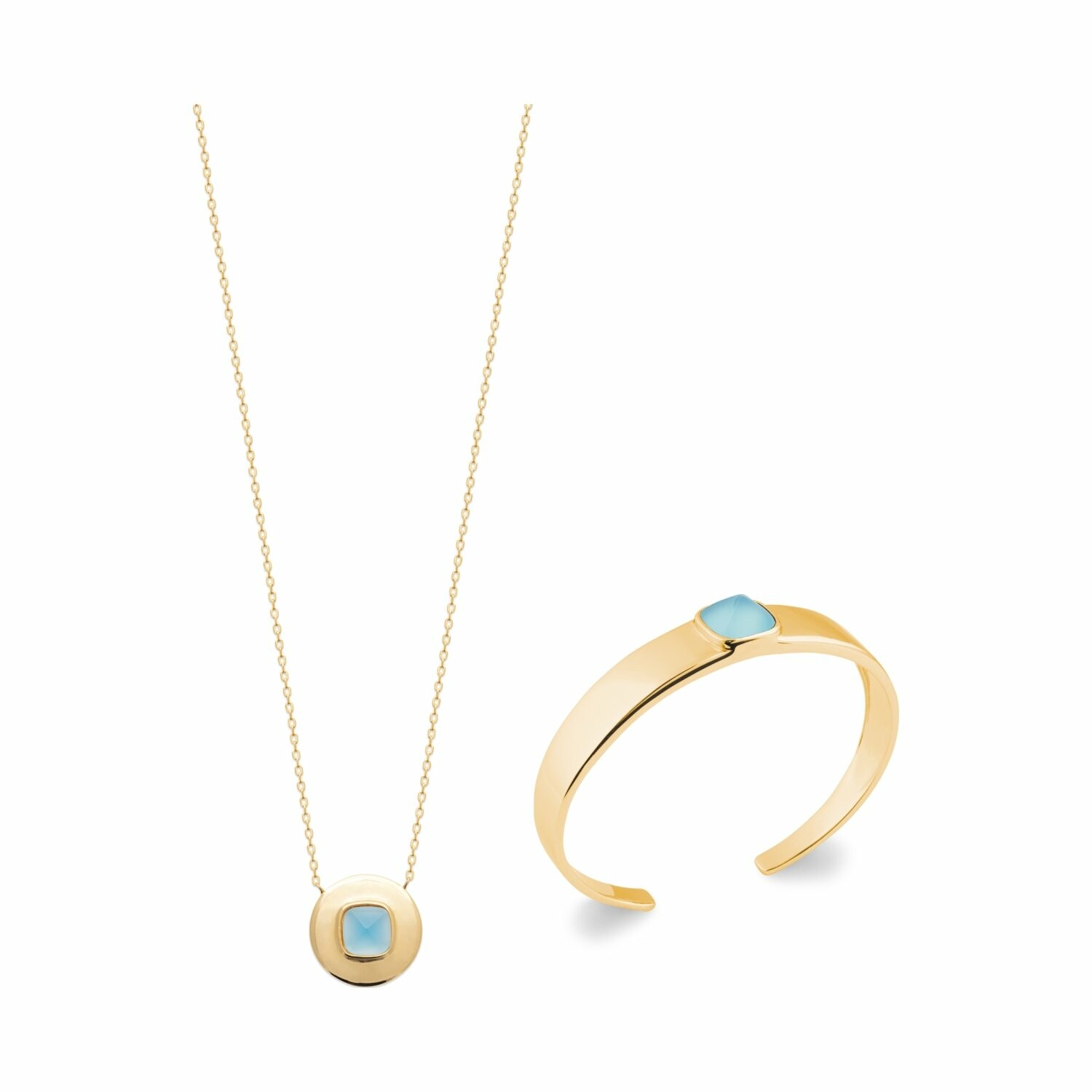 Collier en plaqué or et agate bleue, 45cm
