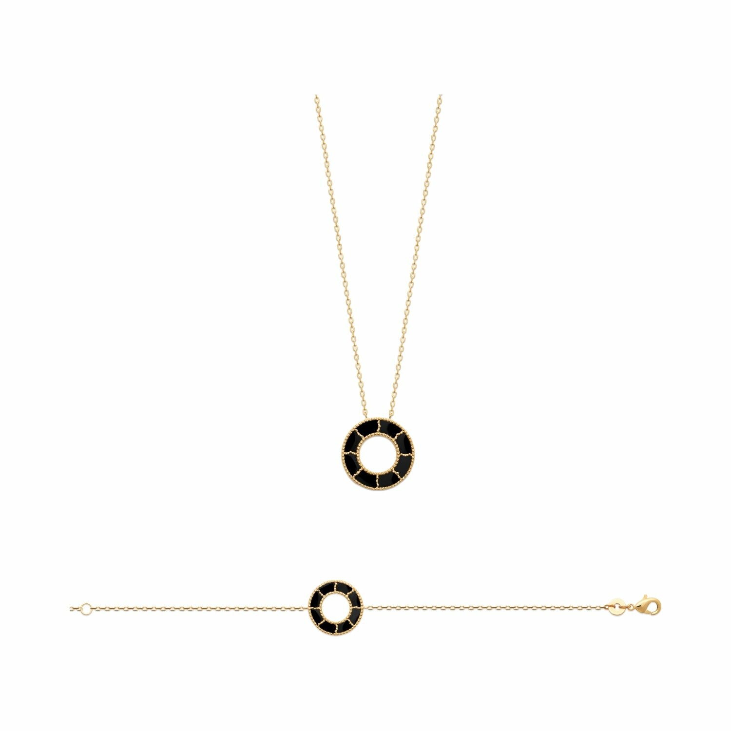 Collier en plaqué or et agate noire, 45cm