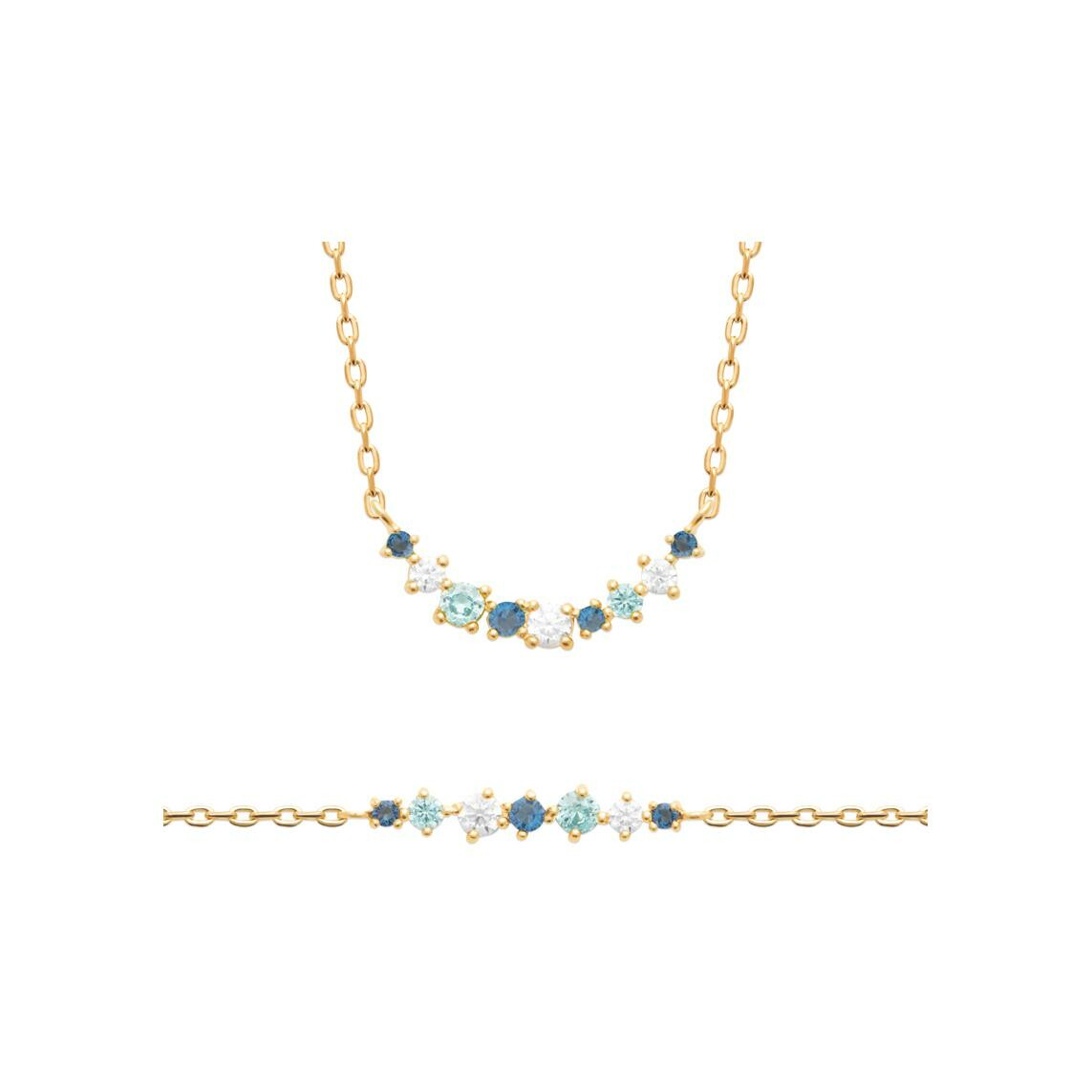 Collier en plaqué or, oxyde de zirconium et pierres de couleurs, 45 cm