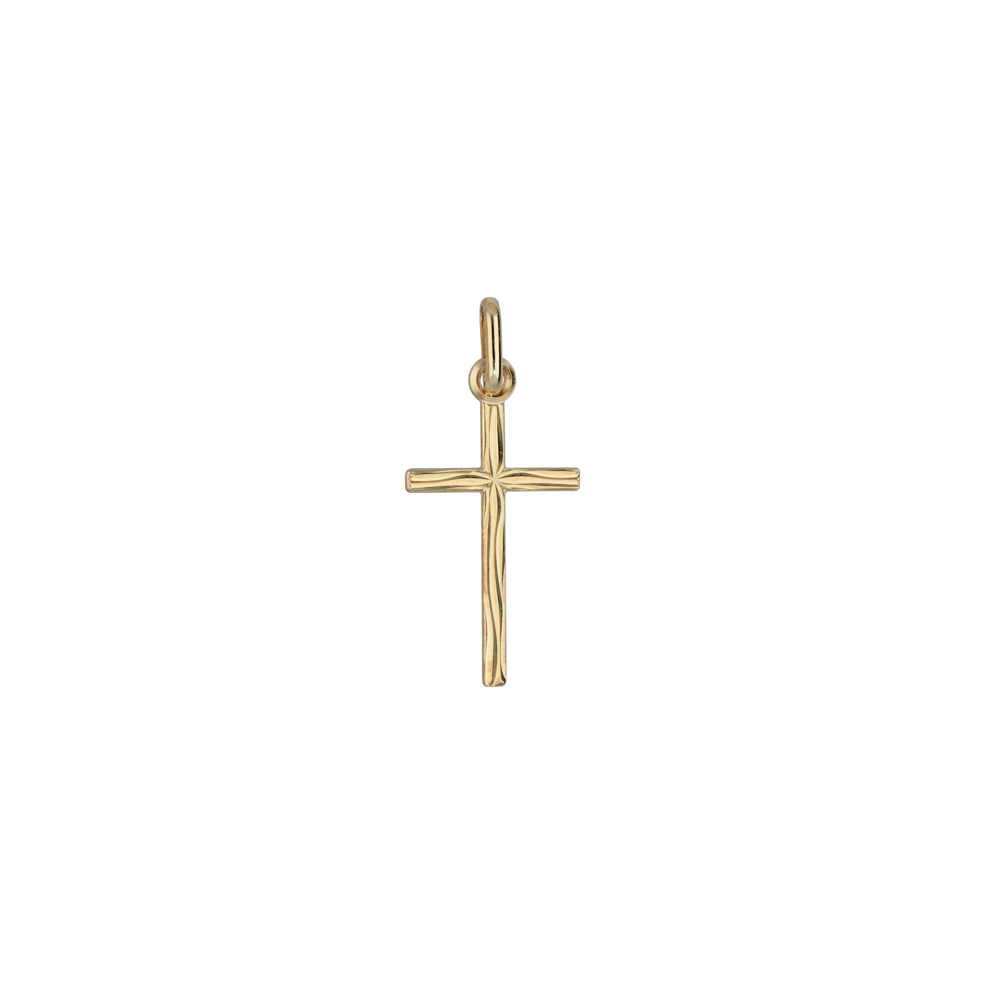 Pendentif petite croix aspect bois en plaqué or